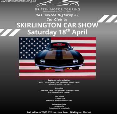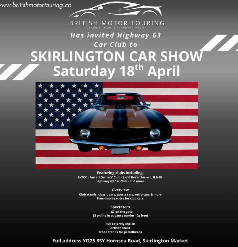 On Saturday 18th April, a brand new show organised by British Motor Touring will be held at Skirlington Market site and we’re proud to say that Highway 63 has been invited to attend with a dedicated club stand!